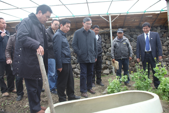 2012年4月27日,自治区政府党组成员、区发展改革委主任金世洵在波密县玉许乡察看农村户用沼气和温室大棚建设。