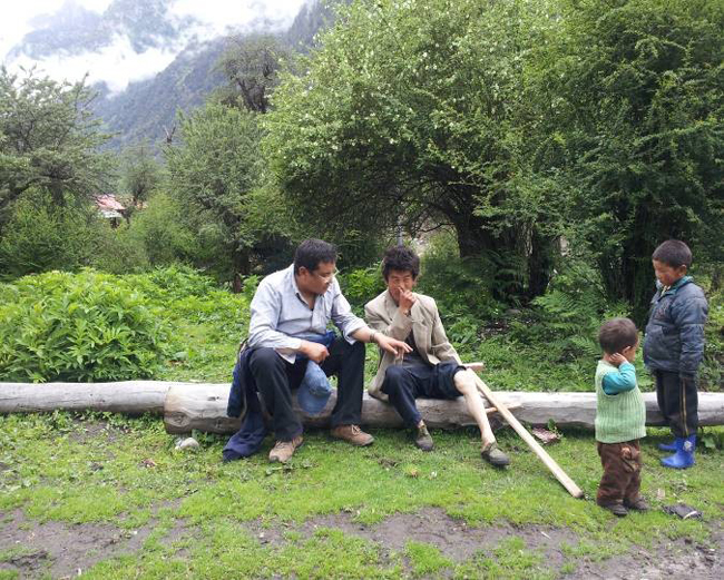 区发改委驻波密县达拉村工作队队长罗布次仁同志正在向帮扶结对户色扎了解近期家庭情况。