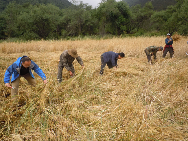在青稞收获之前,驻村工作队联系了雷沃谷神联合收割机的厂家派出技术人员到村里来给村民进行培训。随着天气转好,为了确保颗粒归仓,驻村工作队利用节气期间天气晴朗的有利时机,组织全村村民全力投入当地青稞的抢收工作。
