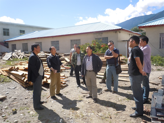 2012年8月12日,大唐西藏波堆水电开发有限公司安钢总经理(左五)实地踏勘玉许乡篮球场选址