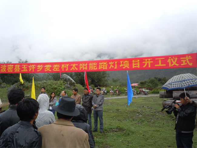8月23日上午11点半,波密县玉许乡麦差村太阳能路灯项目在麦差村的差巴自然村举行简单的开工仪式。县强基惠民活动办和县发展改革委领导、玉许乡党委政府书记、乡长出席了开工仪式。