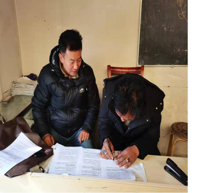 驻村工作队临时党支部书记与乃琼村、东俄玛村、察曲村党支部书记签订共建协议现场