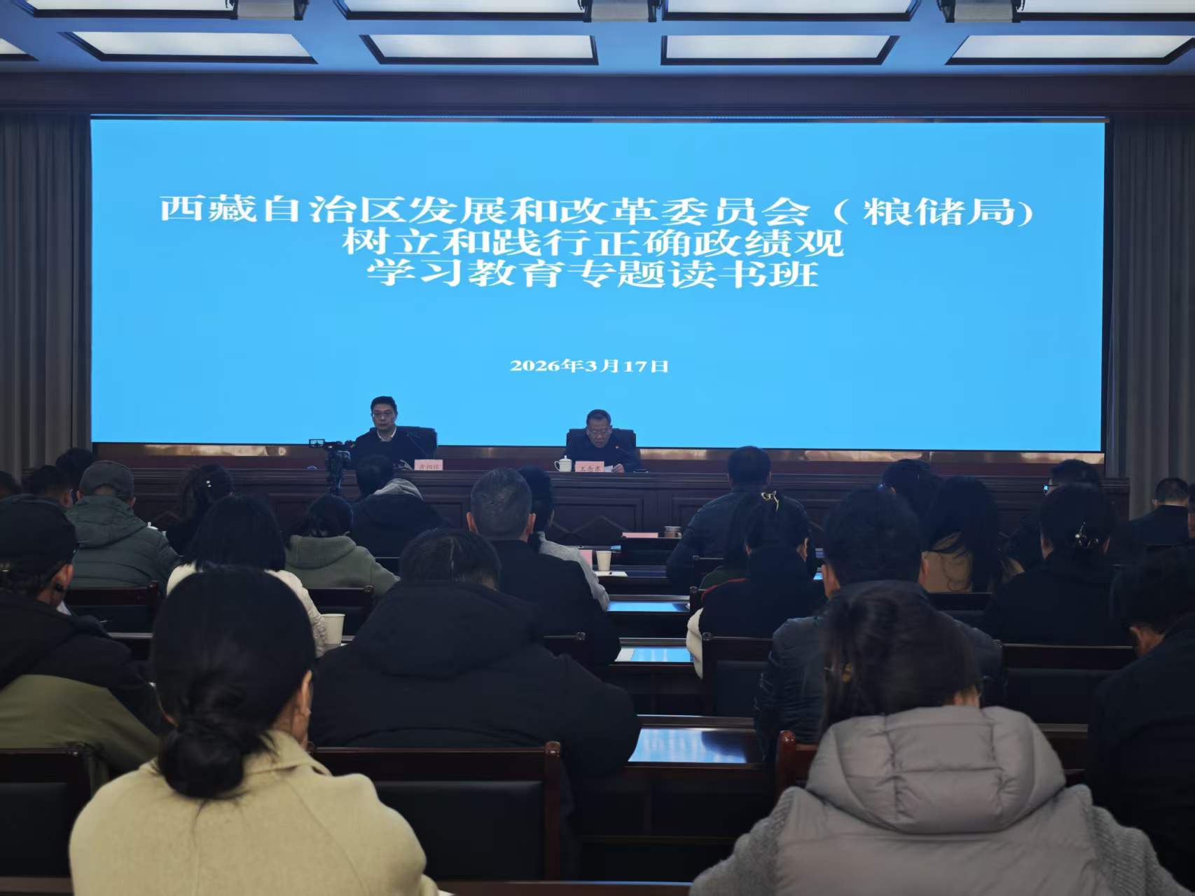 为深入学习贯彻习近平总书记关于树立和践行正确政绩观的重要论述,推动学习教育走深走实,3月17日,区发展改革委(粮储局)举办学习教育专题读书班,委党组书记、副主任王念东主持读书班并讲话,全委党员干部参加。