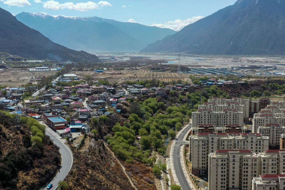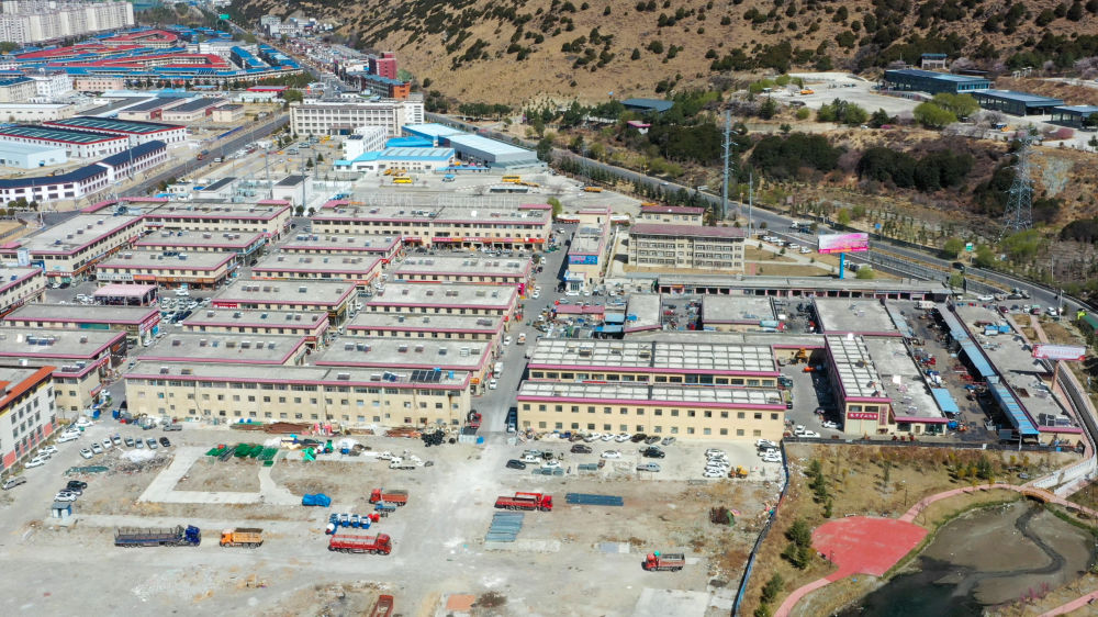 这是西藏林芝巴吉村的建材市场。(2021年4月6日摄,无人机照片)。新华社记者 洛卓嘉措 摄