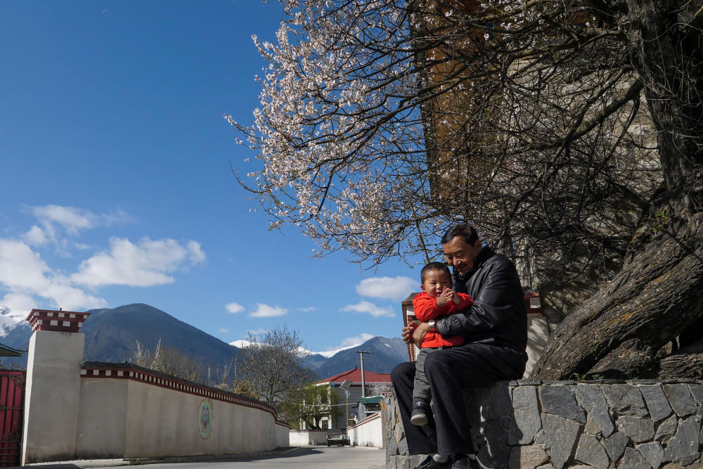 这是村党支部书记米玛与孙子(2021年4月6日摄)。新华社记者 洛卓嘉措 摄