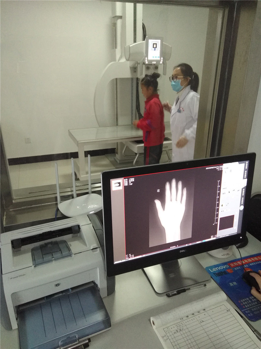 在甘肃省庆阳市,医生在对疑似大骨节病的儿童开展X线检查(2018年10月29日摄)。新华社发
