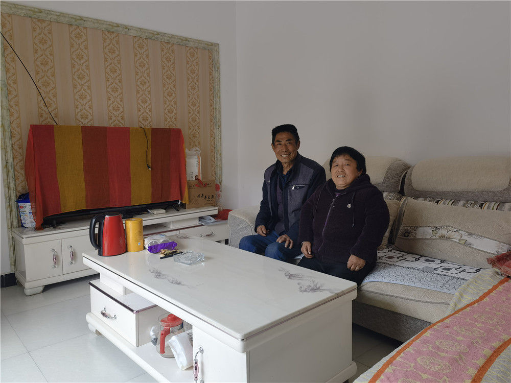 2017年,吴明军一家搬离土坯房,住上易地搬迁点独门独院的大砖房,用上了自来水、太阳能,购置了新家具和彩电冰箱。