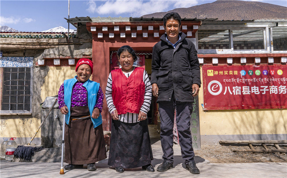 48岁的边巴措姆患有大骨节病,个头矮小,走路有些吃力。她说,党和政府对大骨节病人特别关照。由于不能从事体力劳动,她在政府帮助下开办了“电子商务站”,在院子一角的小房子里售卖一些日用品,自立自强。