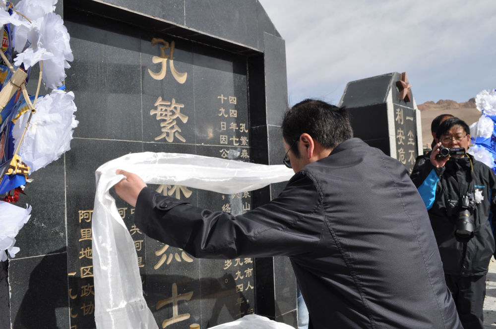 当地群众在阿里狮泉河烈士陵园祭奠孔繁森。(新华社发 蒋先平摄)