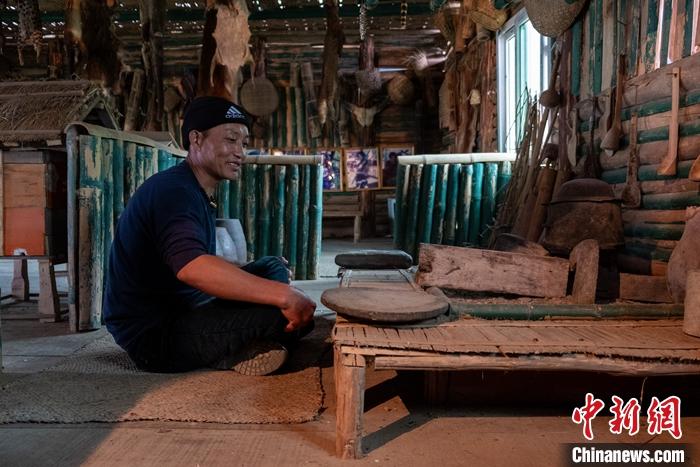 图为5月17日,扎西在自办的猎人博物馆内。 中新社记者 江飞波 摄