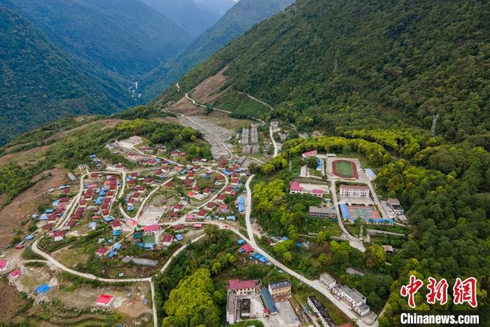 图为5月17日,航拍扎西所在的达木珞巴民族乡达木村。(无人机照片) 中新社记者 江飞波 摄