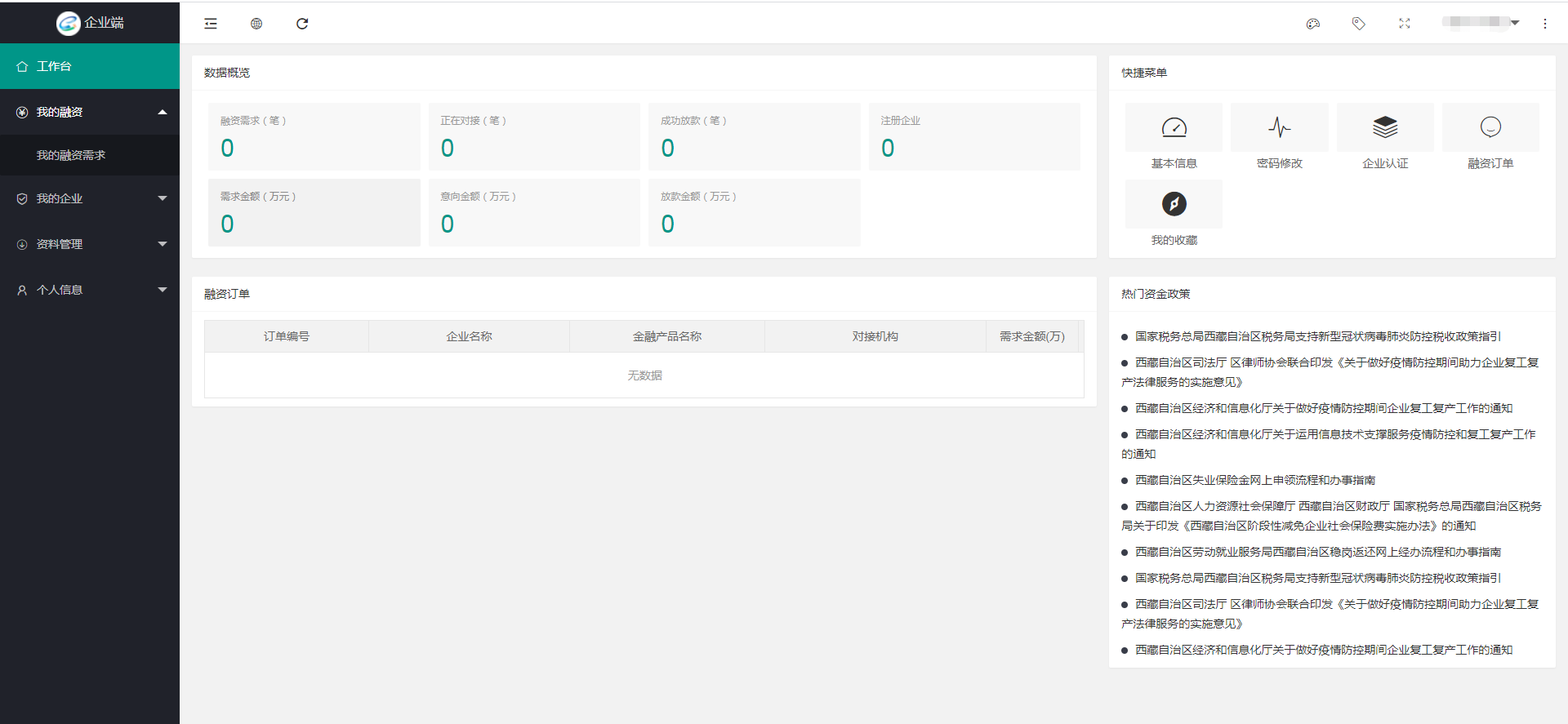 4、登录成功后,显示以下企业端界面