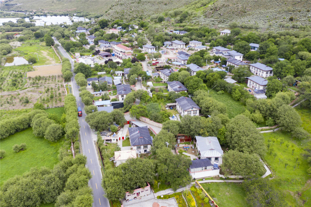 俯瞰林芝市巴宜区林芝镇嘎拉村(无人机照片,7月21日摄)。新华社记者 普布扎西 摄