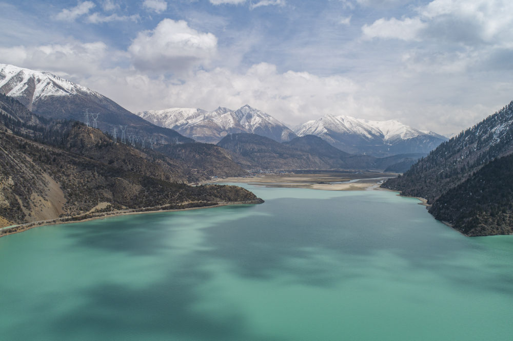 这是位于西藏昌都市八宿县境内的然乌湖(无人机照片,3月30日摄)。新华社记者 孙非 摄