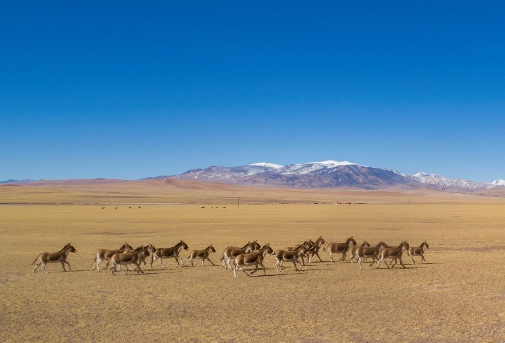 这是在西藏羌塘国家级自然保护区拍摄的藏野驴(无人机照片,2019年12月23日摄)。新华社记者 孙非 摄