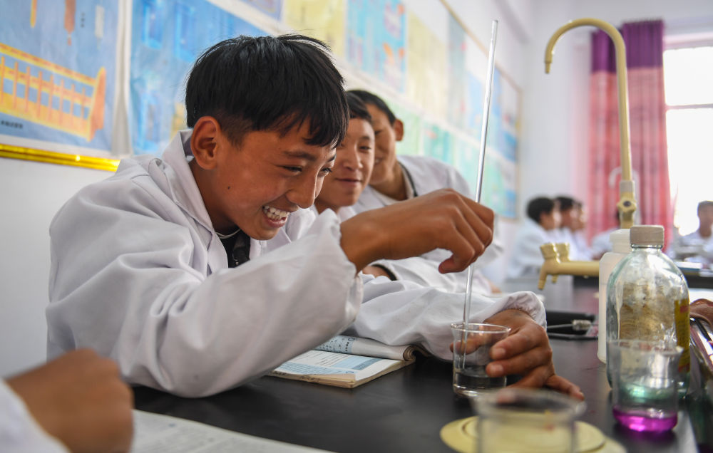 西藏昌都市芒康县盐井中学学生在上化学课(2019年6月6日摄)。新华社记者 晋美多吉 摄