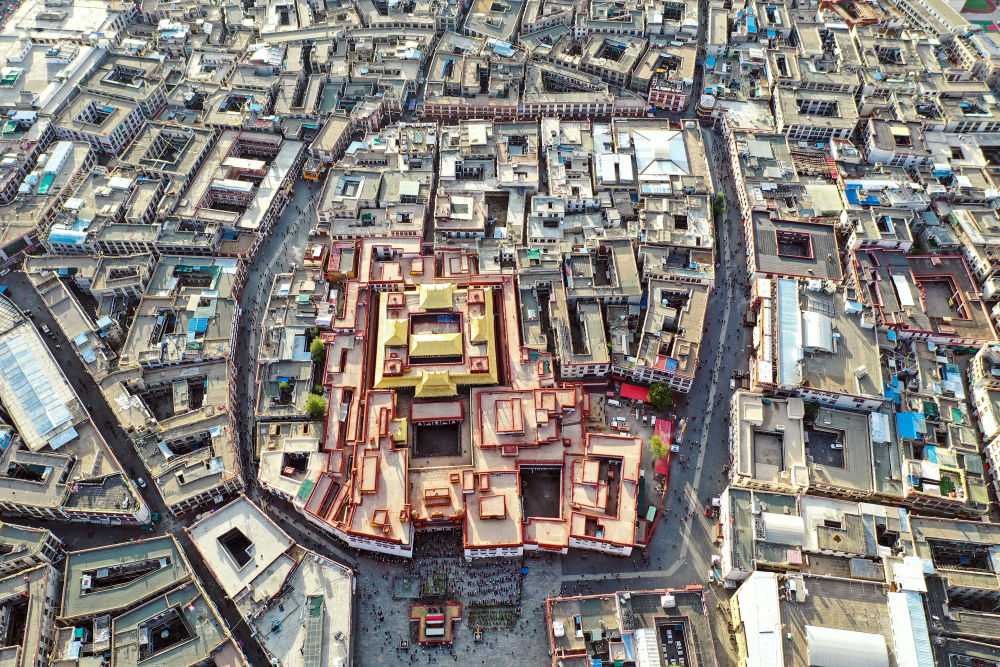 鸟瞰拉萨八廓街(无人机照片,2019年8月10日摄)。新华社记者 普布扎西 摄