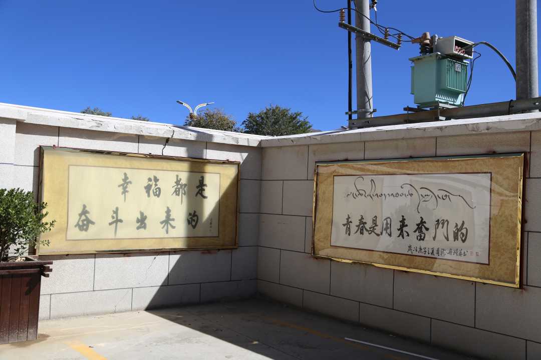 “绿水青山就是金山银山”“大家撸起袖子加油干”“幸福都是奋斗出来的”……走进西藏拉萨市城关区蔡公堂街道蔡村党群服务中心,门口悬挂着拉萨市文联、书法家协会授予的“书法村”牌匾。院内墙壁上、大楼走廊内,处处都悬挂着藏汉双语、行草隶楷各种字体的书法作品。