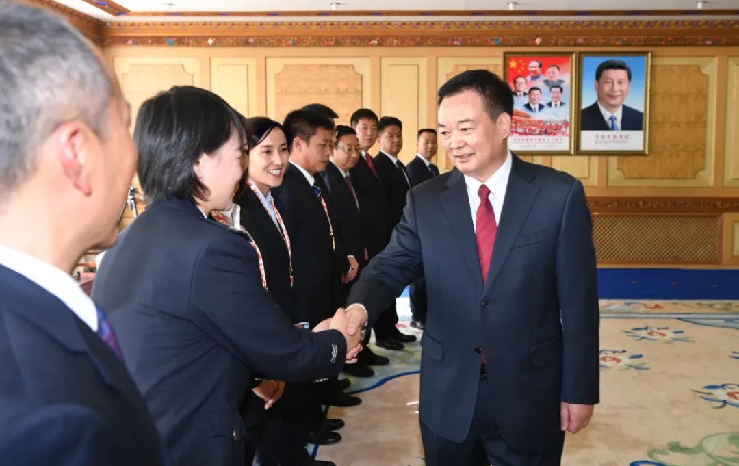 12月21日,自治区党委书记王君正在拉萨会见平安中国建设西藏自治区先进集体、先进个人和示范市、县代表。
