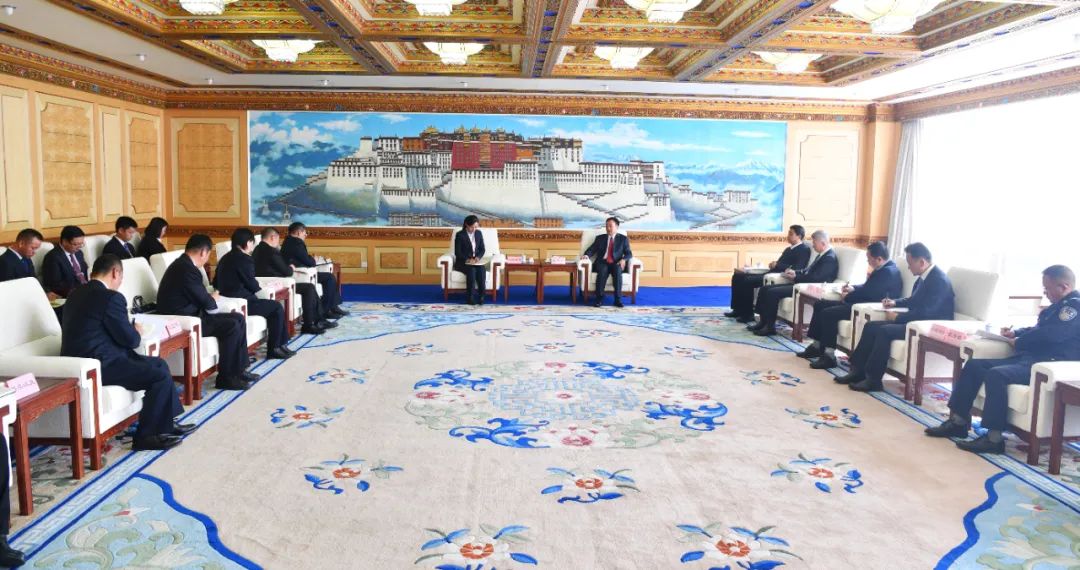 自治区党委副书记、自治区代理主席严金海,自治区党委常务副书记、自治区政协党组书记庄严,自治区党委常委、政法委书记刘江,自治区党委常委、秘书长达娃次仁,自治区副主席张洪波参加会见。