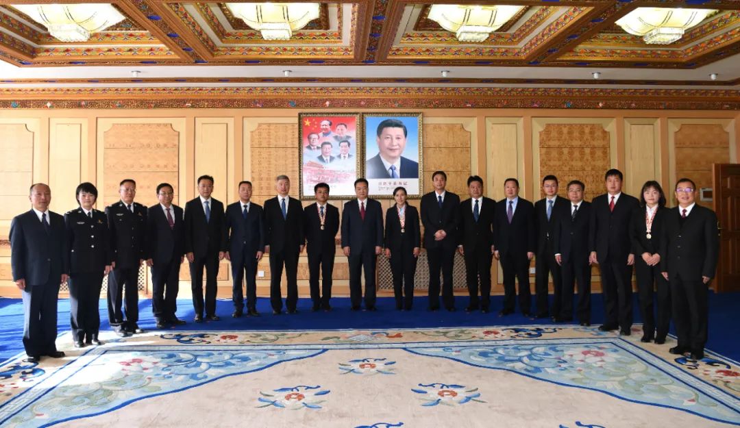 这是王君正与平安中国建设西藏自治区先进集体、先进个人和示范市、县代表合影。记者 旦增西旦 摄