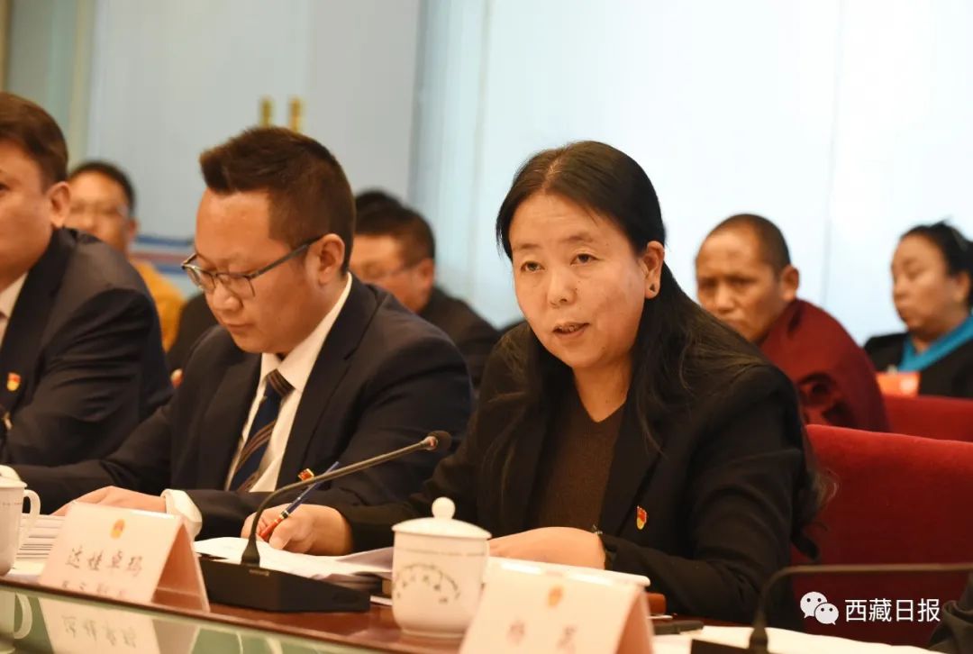 这是人大代表达娃卓玛在发言。记者 李洲 摄