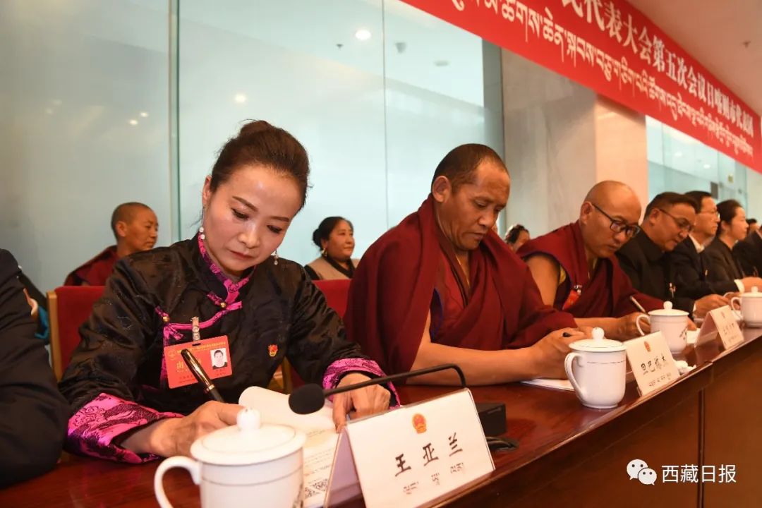 这是自治区十一届人大五次会议日喀则代表团的代表在认真记录。记者 李洲 摄