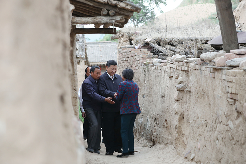 2017年6月21日,习近平在山西省忻州市岢岚县赵家洼村看望特困户王三女一家。