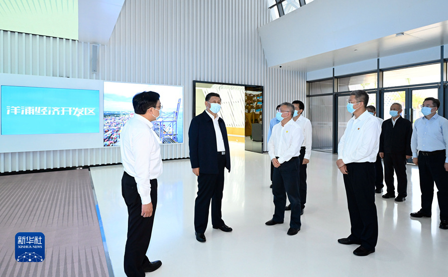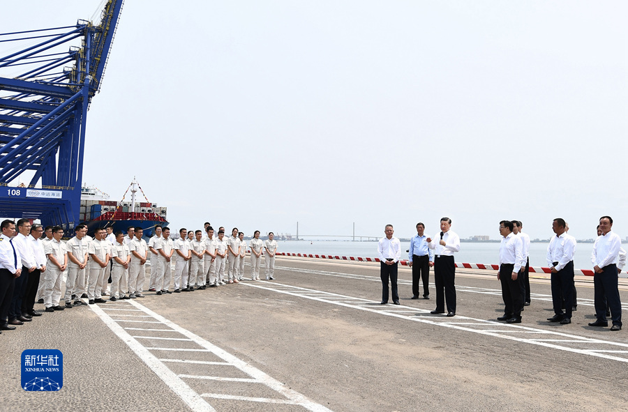 12日上午,习近平总书记来到位于海南省儋州市的洋浦经济开发区,先后考察了洋浦展示馆、洋浦国际集装箱码头小铲滩港区,了解洋浦经济开发区发展和中国特色自由贸易港建设等情况。(文字记者:张晓松、朱基钗;摄影记者:李学仁、谢环驰、燕雁)