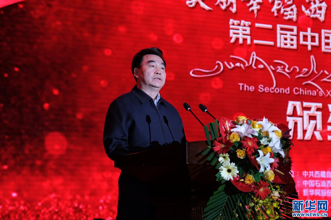图为西藏自治区党委常委、宣传部长汪海洲在颁奖典礼现场致词(4月20日摄)。新华网发 敬伯仁摄
