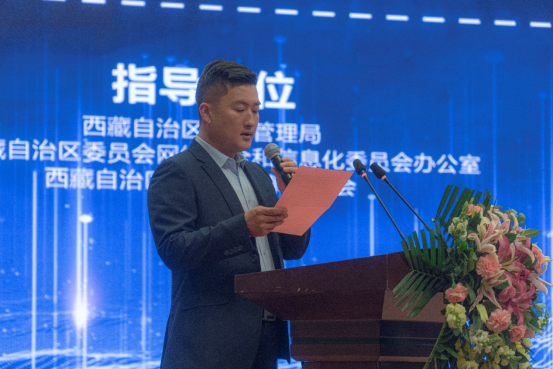 图为西藏互联网协会秘书长彭坤在讲话(4月29日摄)。新华网发 洛桑旺堆(实习生)摄