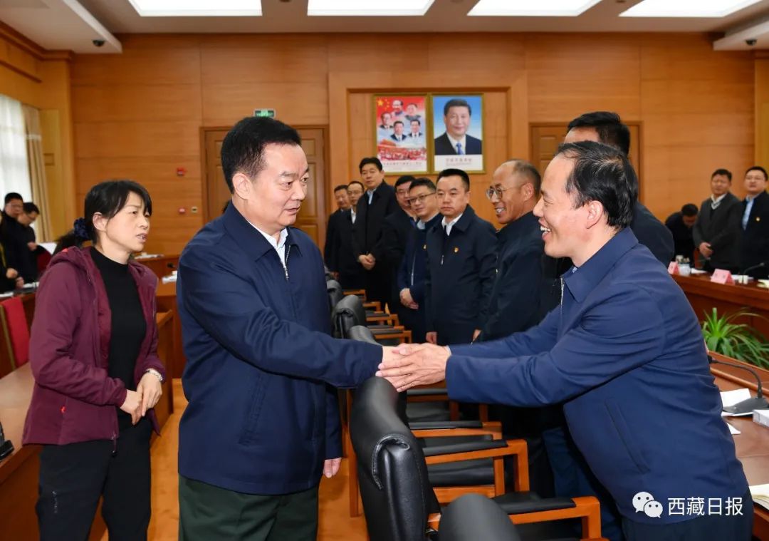 这是王君正与新任职干部握手。记者 旦增西旦 摄