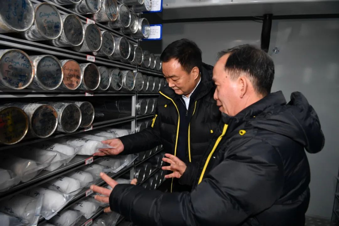在中科院青藏高原研究所拉萨部一、二楼展厅,王君正认真观看展板、听取介绍,详细了解青藏高原综合科学考察研究历程、科研进展和成果体系等情况;在冰芯库认真察看科考队近日从珠峰峰顶带回的冰芯样品,对科考队成功登顶珠穆朗玛峰、完成世界海拔最高自动气象站架设,取得珠峰科考里程碑式突破的成绩给予充分肯定。指出,中科院青藏高原研究所拉萨部大力弘扬科学家精神,攻坚克难、勇攀高峰,不断取得科研新成果,为国家争了光,为西藏长治久安和高质量发展作出了贡献,用实际行动为“两路”精神和老西藏精神注入了新的时代内涵。王君正代表自治区党委、政府向成功登顶的珠峰科考队员表示祝贺,向所有参与科学考察的科学家和工作人员致以崇高敬意,向中科院青藏高原研究所拉萨部多年来在服务西藏经济社会发展中作出的积极贡献表示衷心感谢。