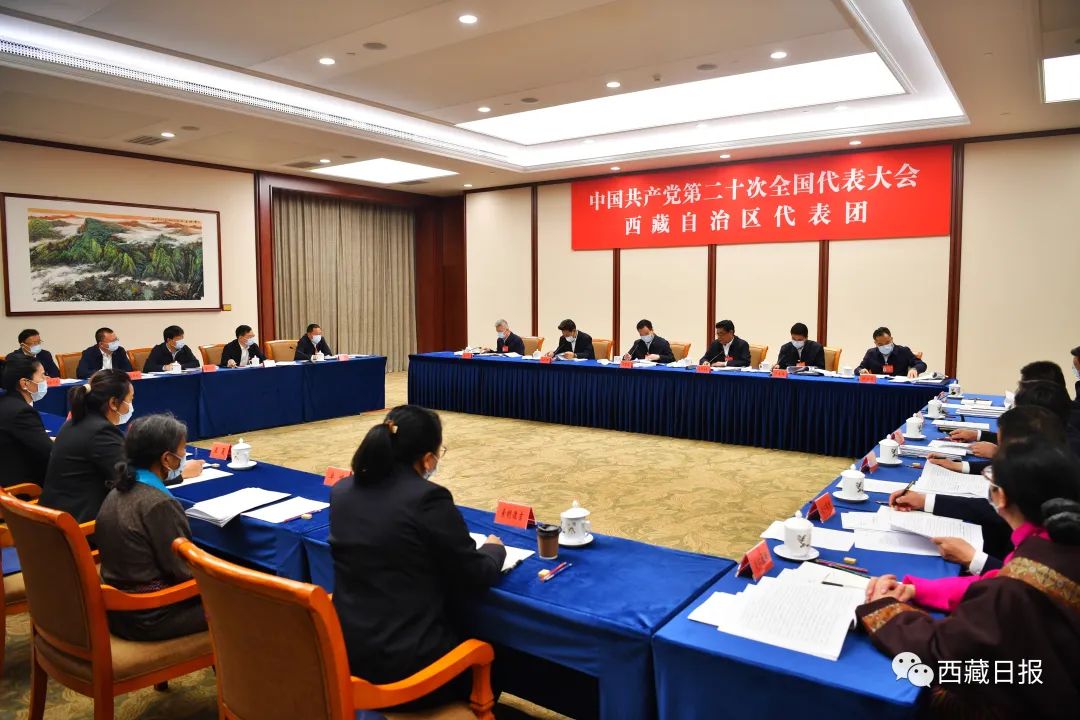 白玛赤林说,习近平总书记所作的报告,科学分析了当前国际国内形势,深刻阐述了过去5年工作和新时代10年的伟大变革,深刻阐释了新时代坚持和发展中国特色社会主义的重大理论和实践问题,深刻阐明了未来一个时期党和国家事业发展的大政方针和行动纲领。报告通篇闪耀着马克思主义思想光辉,是指引全党全国各族人民把新时代中国特色社会主义不断推向前进,向着全面建成社会主义现代化强国的第二个百年奋斗目标、向着中华民族伟大复兴中国梦奋勇前进的政治宣言和行动纲领。我完全赞成、坚决拥护。