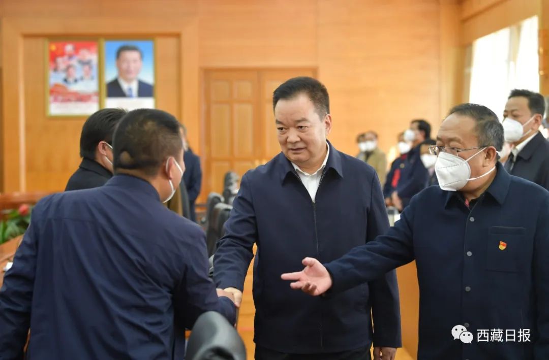 2日下午,自治区党委书记王君正与自治区党委党校(行政学院)教师进行座谈。这是王君正与自治区党委党校(行政学院)教师亲切握手。记者 旦增西旦 摄
