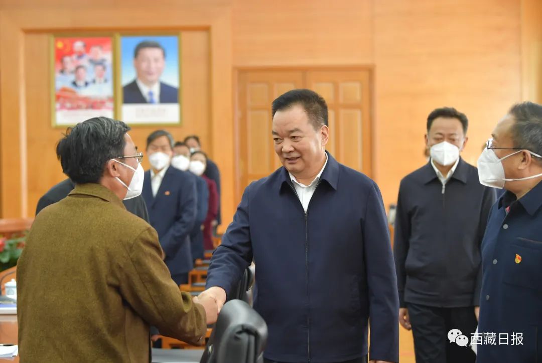 11月2日下午,自治区党委书记王君正与自治区党委党校(行政学院)教师进行座谈。这是王君正与自治区党委党校(行政学院)教师亲切握手。记者 旦增西旦 摄