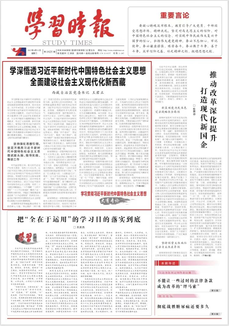 王君正在学习时报发表署名文章:学深悟透习近平新时代中国特色社会主义思想 全面建设社会主义现代化新西藏