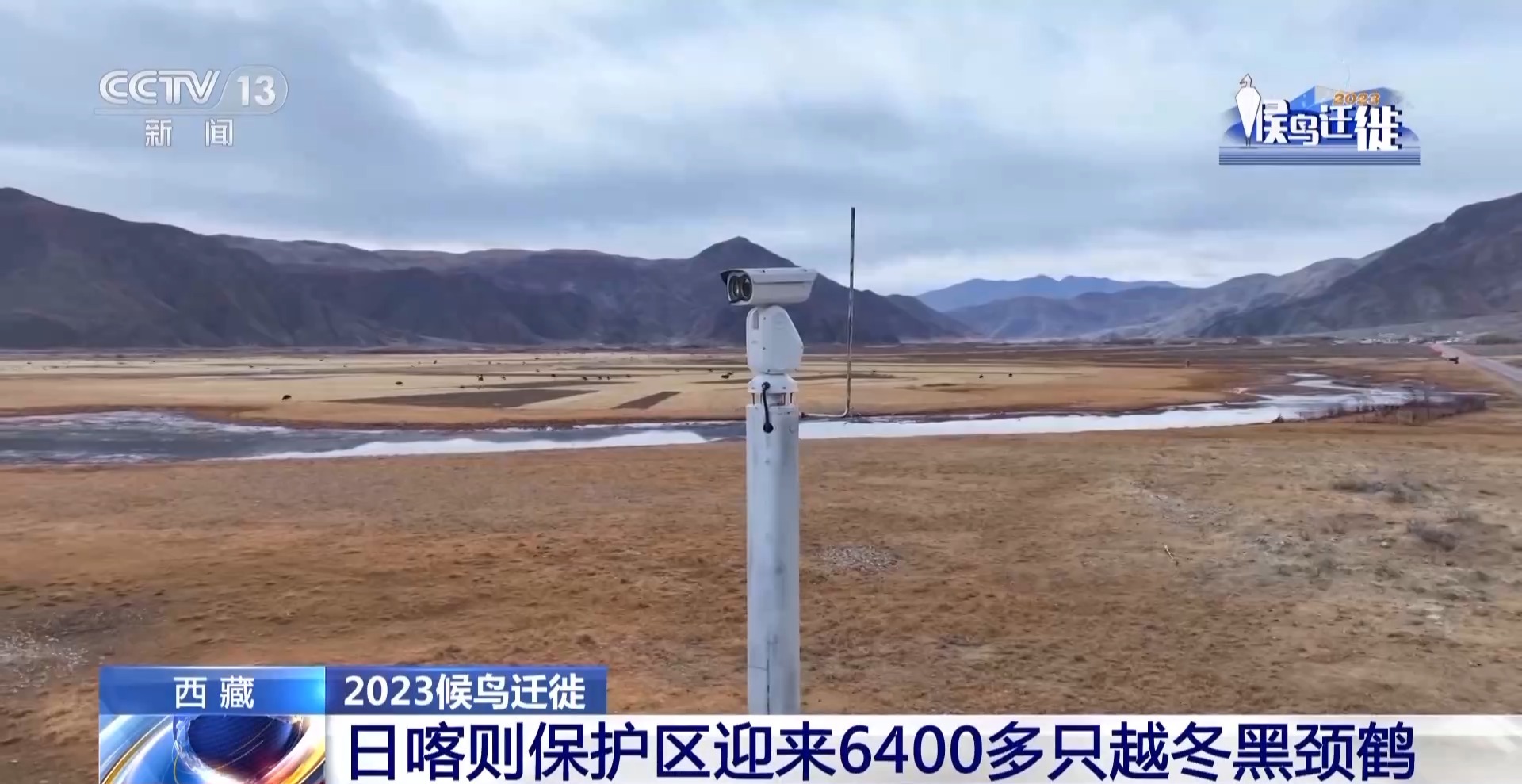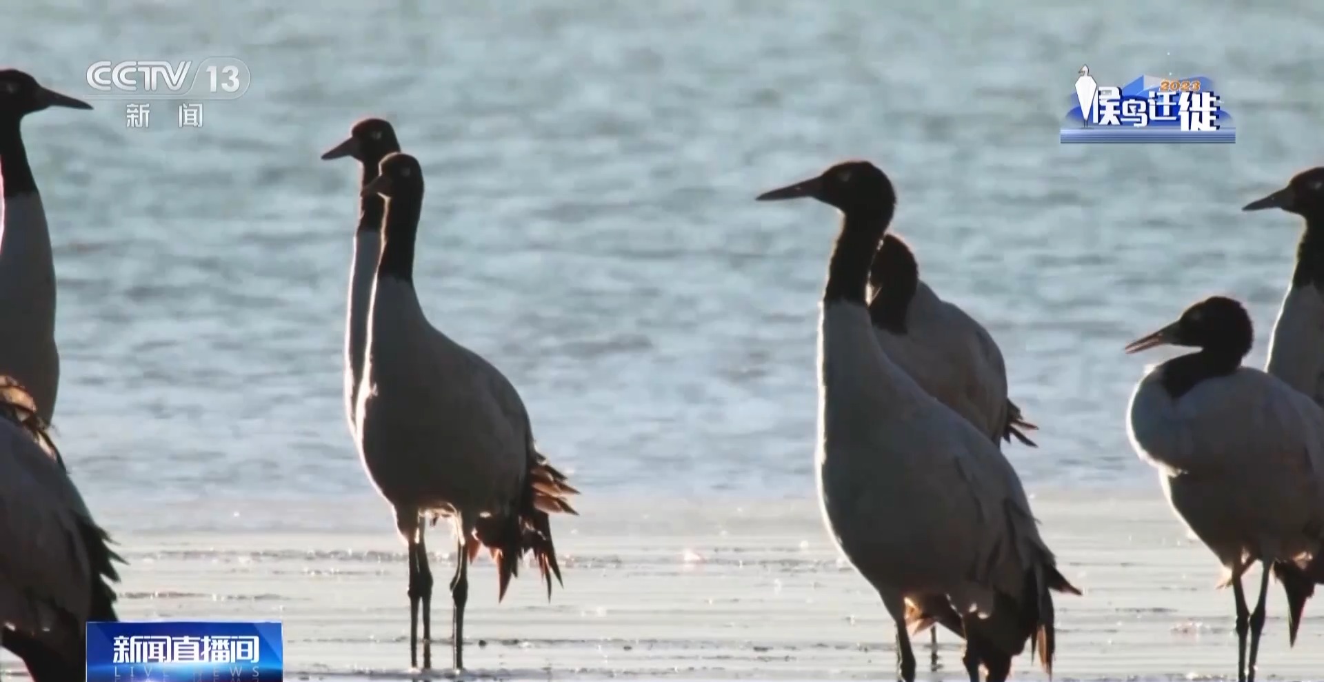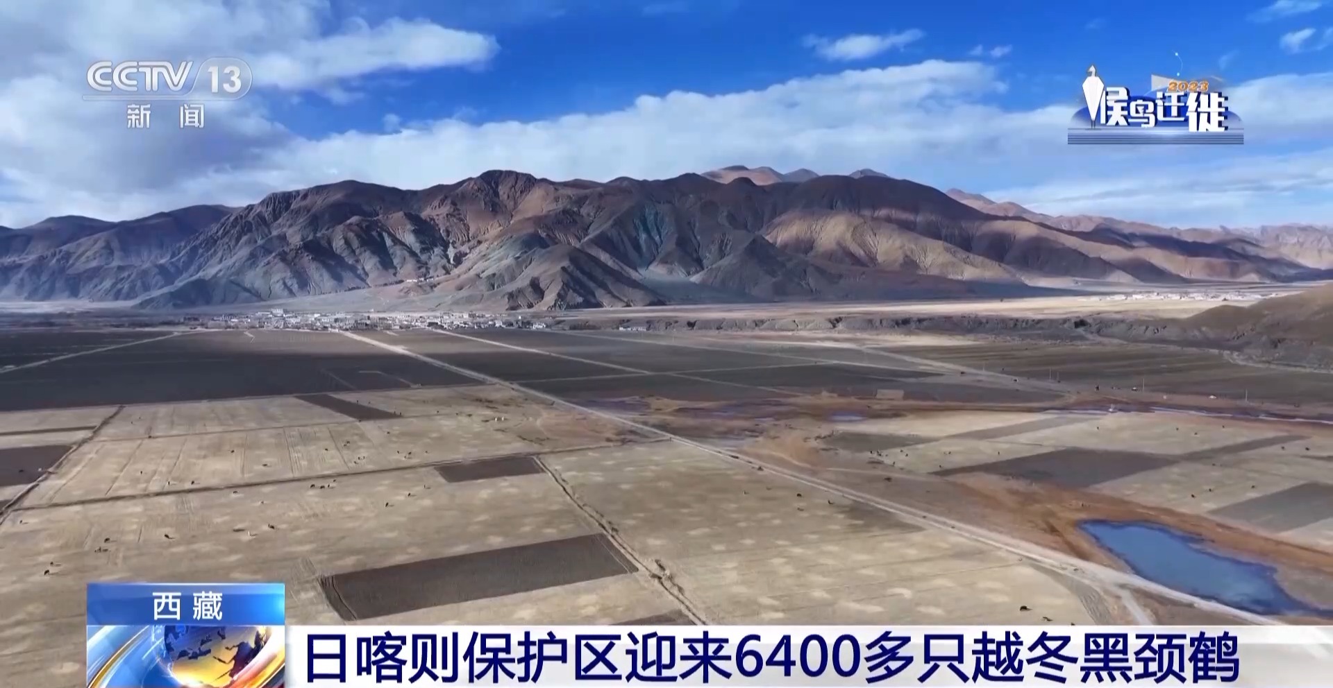 总台记者 多吉仁青:我现在是在日喀则市拉孜县曲玛乡,这里属于西藏雅鲁藏布江中游河谷黑颈鹤国家级自然保护区,这里地势平坦、开阔,为它们觅食、夜栖提供了绝佳的场所。