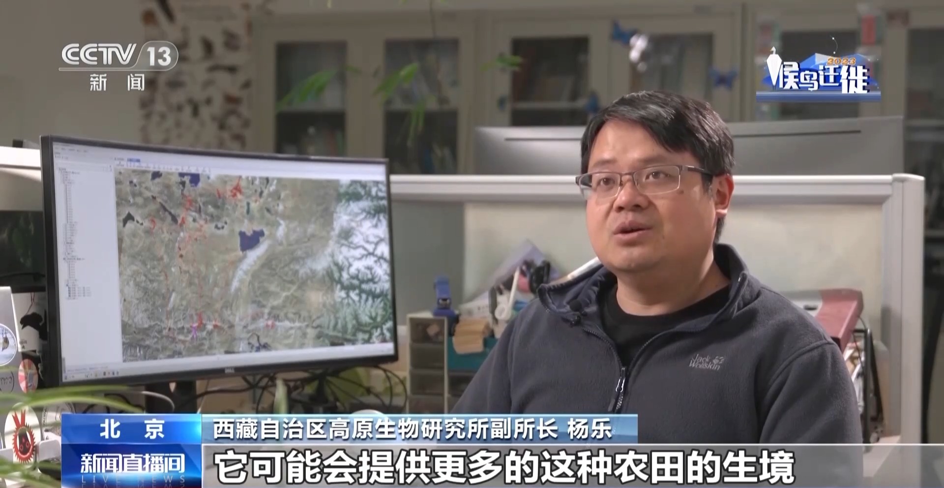 西藏自治区高原生物研究所副所长 杨乐:通过这种高标准农田建设,它可能会提供更多的农田的生境给黑颈鹤来做选择,环境能够承载的种群数量,可能就会在原有的基础上进一步地放大。