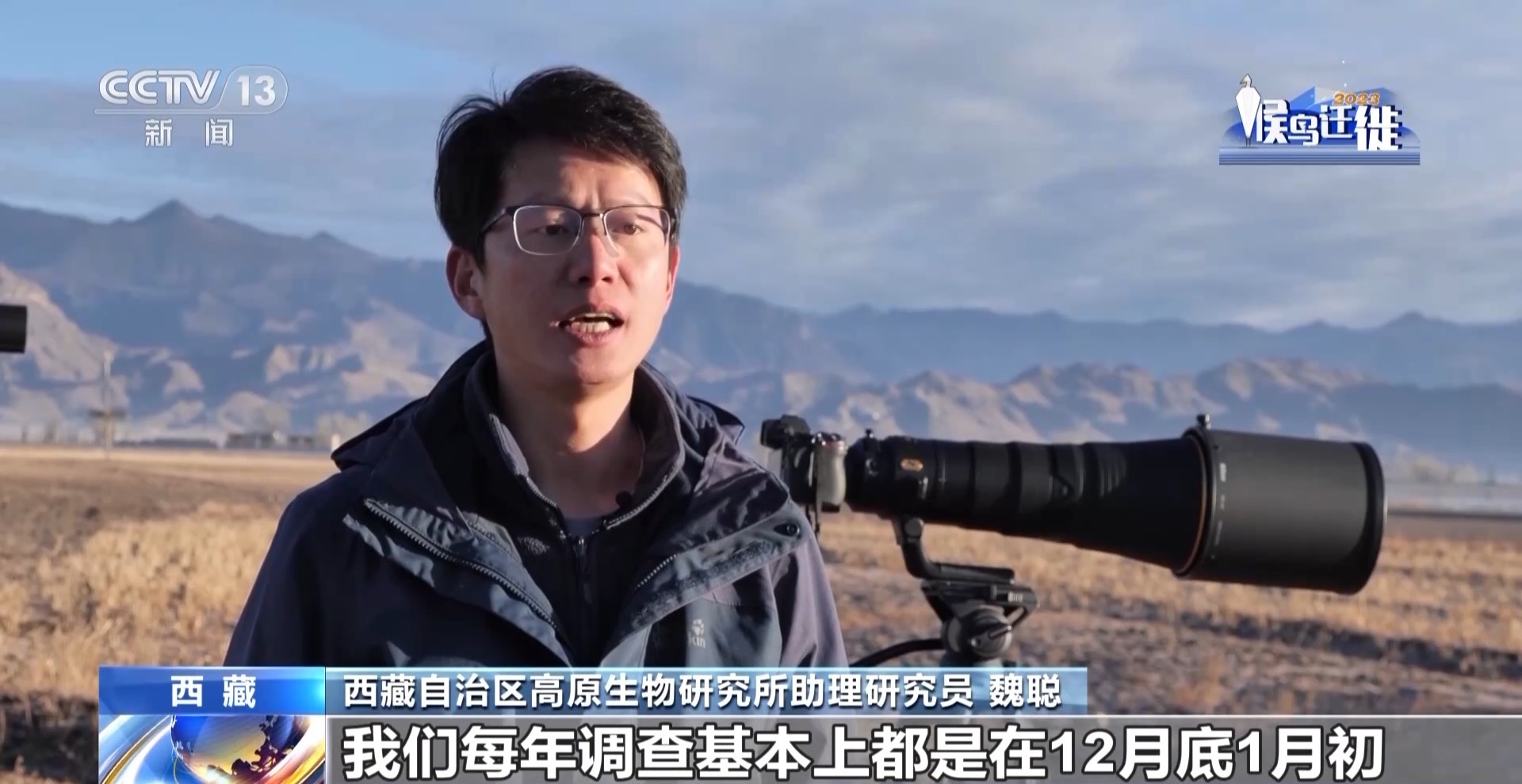 西藏自治区高原生物研究所助理研究员 魏聪:我们每年调查的基本上都是在12月底1月初,今天我们到林周县来,也是做一个初步的预调查,主要目的是看一下今年黑颈鹤在林周的数量情况是否还会有继续增长。