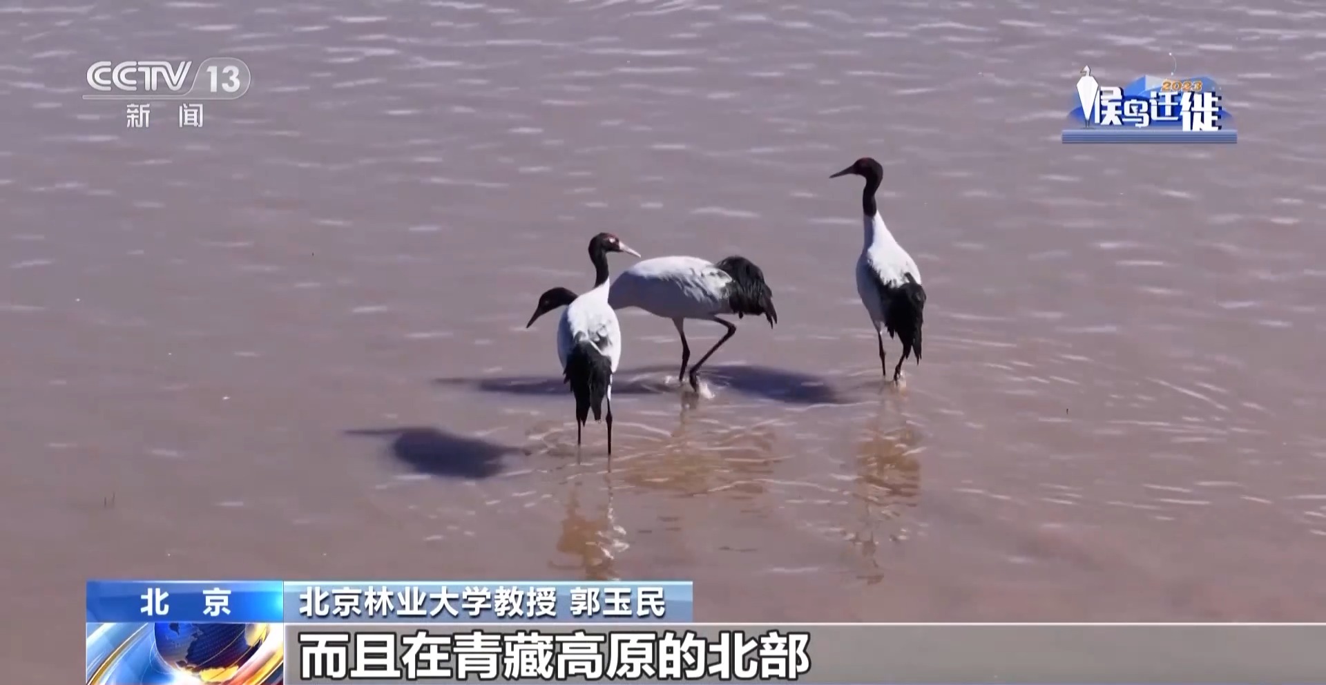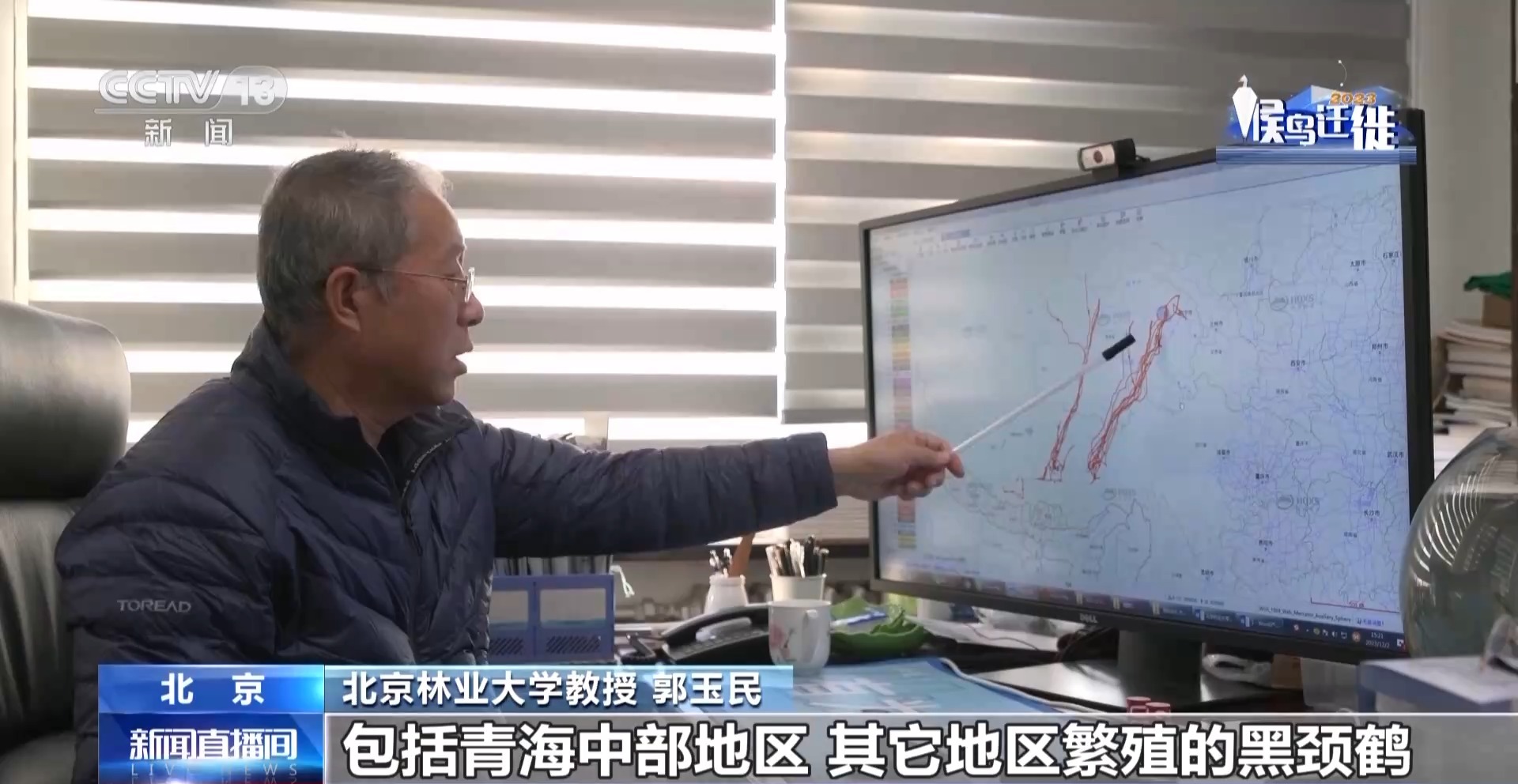 北京林业大学教授 郭玉民:青海祁连山的南麓繁殖的黑颈鹤,包括青海中部地区繁殖的黑颈鹤,沿着这个方向是到西藏的林芝地区越冬。在青海省其它区位,包括在新疆阿尔金山繁殖的这些,在甘肃繁殖的这些,它们是到拉萨以北的林周地区越冬。还有一些在班公湖这一带繁殖的,在普兰繁殖的,它们沿着雅鲁藏布江到日喀则地区越冬,这是整个秋季的时候迁徙的路线,黑颈鹤这一物种无论从种群数量上还是从分布上都在扩大。