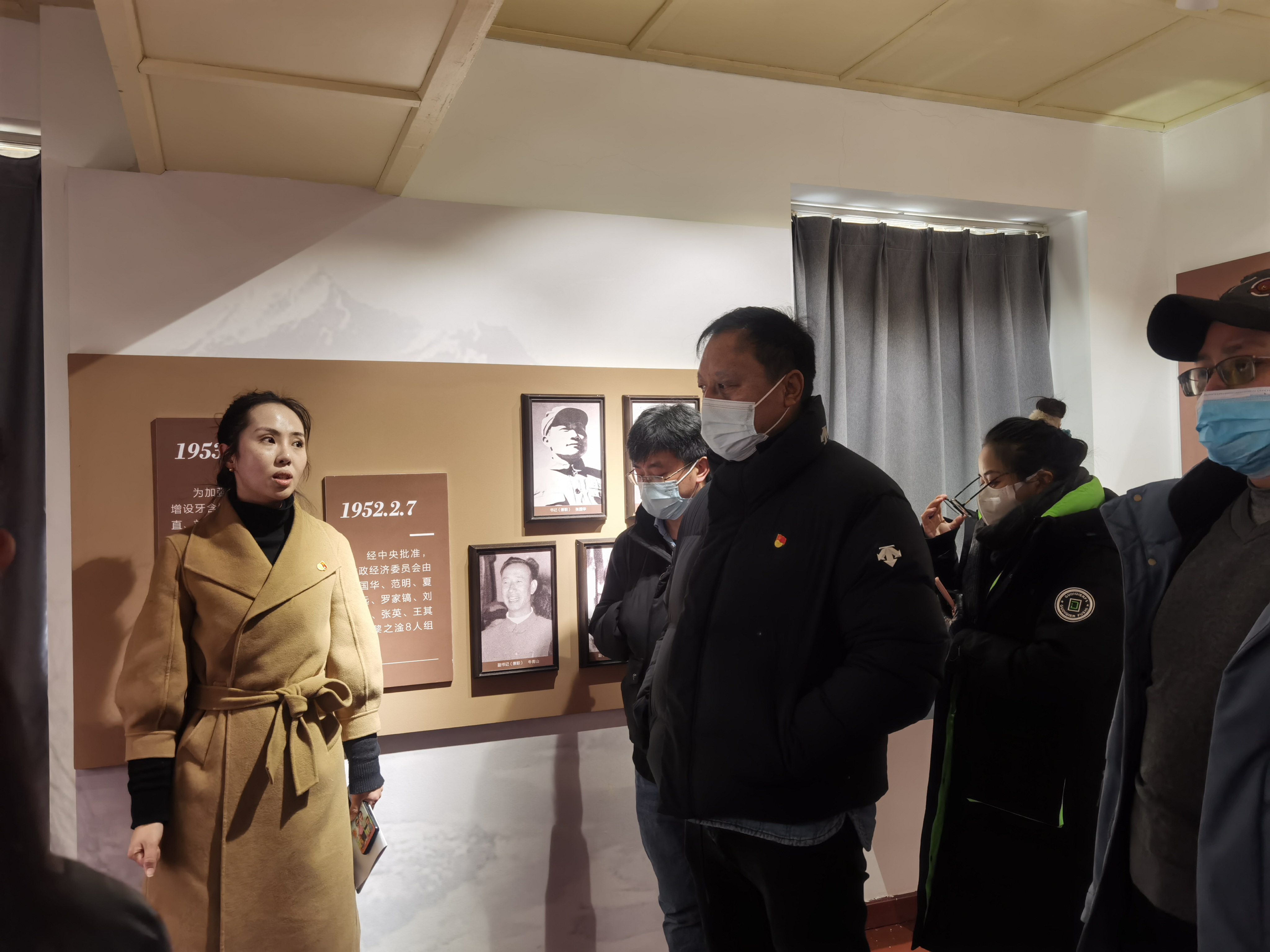 1月6日,政工人事处程森武、 机关党委孙晨宇、资源节约和环境保护处次仁德吉同志为自治区科技厅能源研究示范中心一行讲解红色遗迹系列展陈。