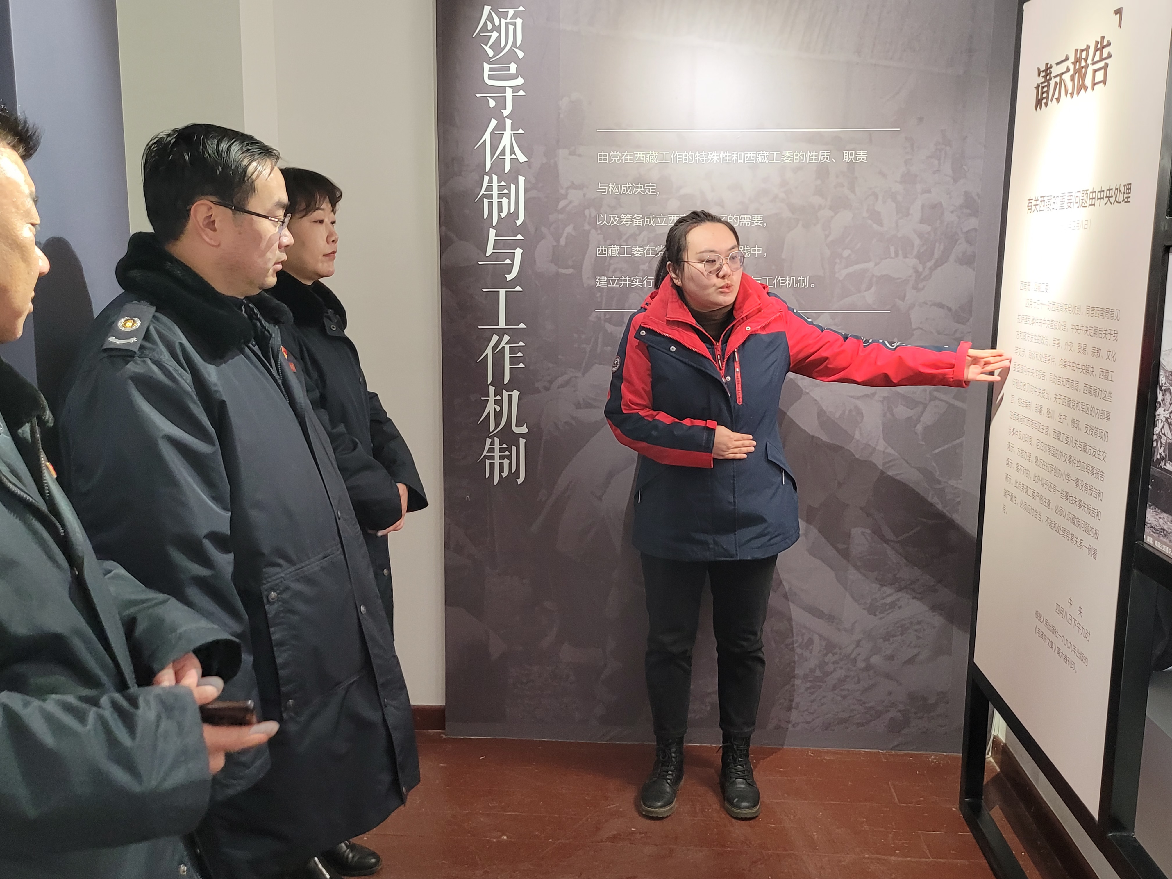 2月10日上午,环资处阿旺次仁、研究中心王阳、环资处次仁德吉同志为自治区税务局党支部一行讲解红色遗迹系列展陈。