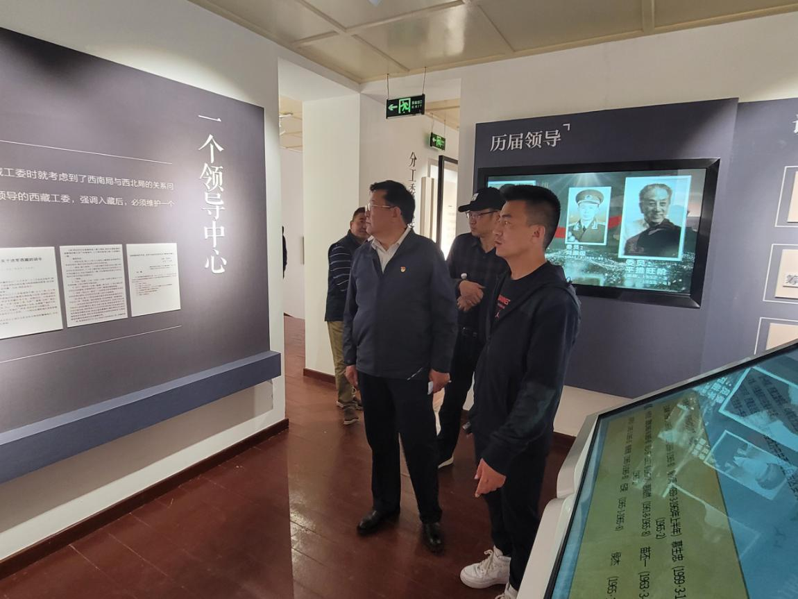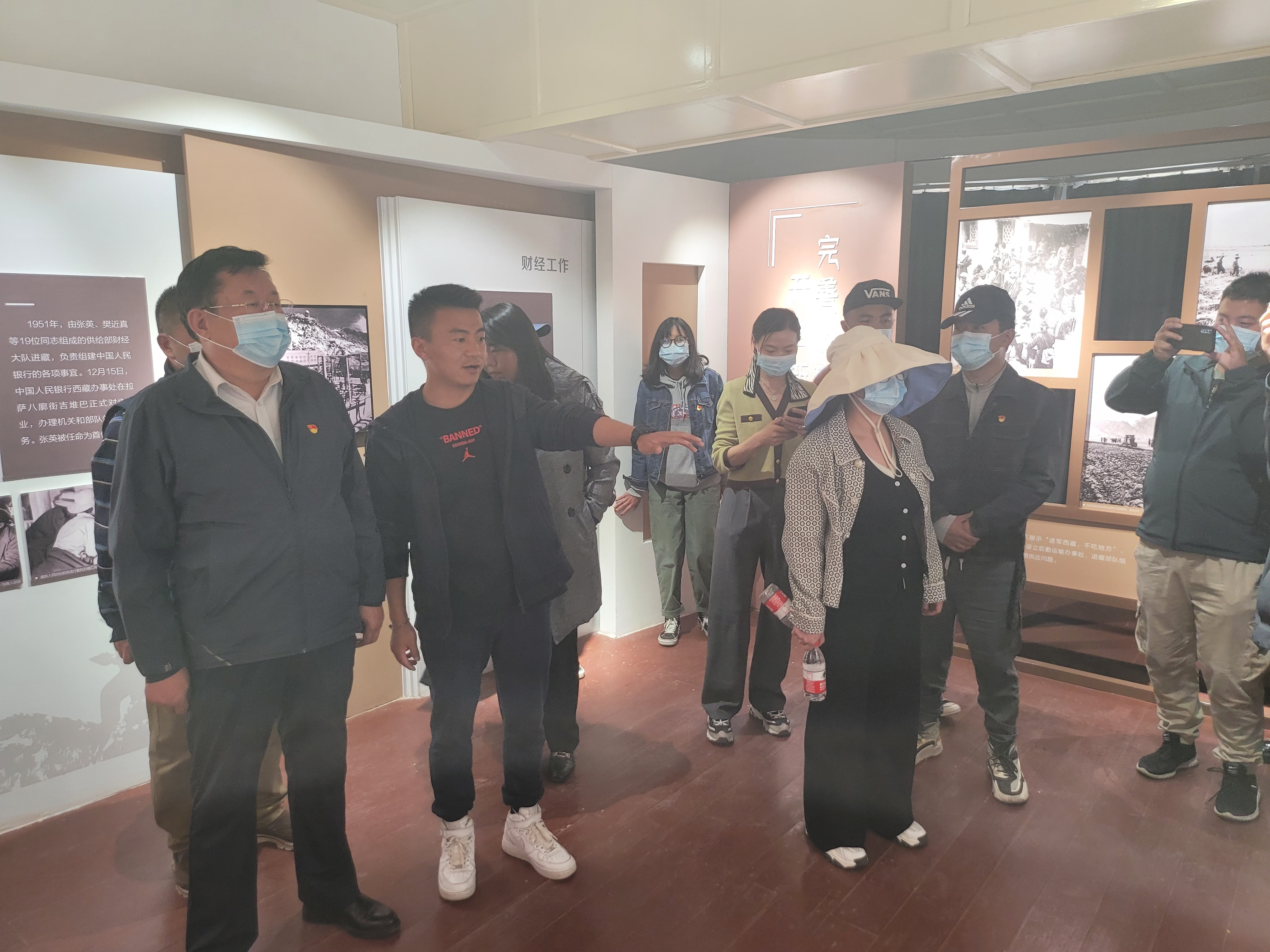 5月10日上午,节能监察中心普琼、机关党委巴桑罗布为自治区地勘局一行十五名党员干部讲解红色遗迹系列展陈。