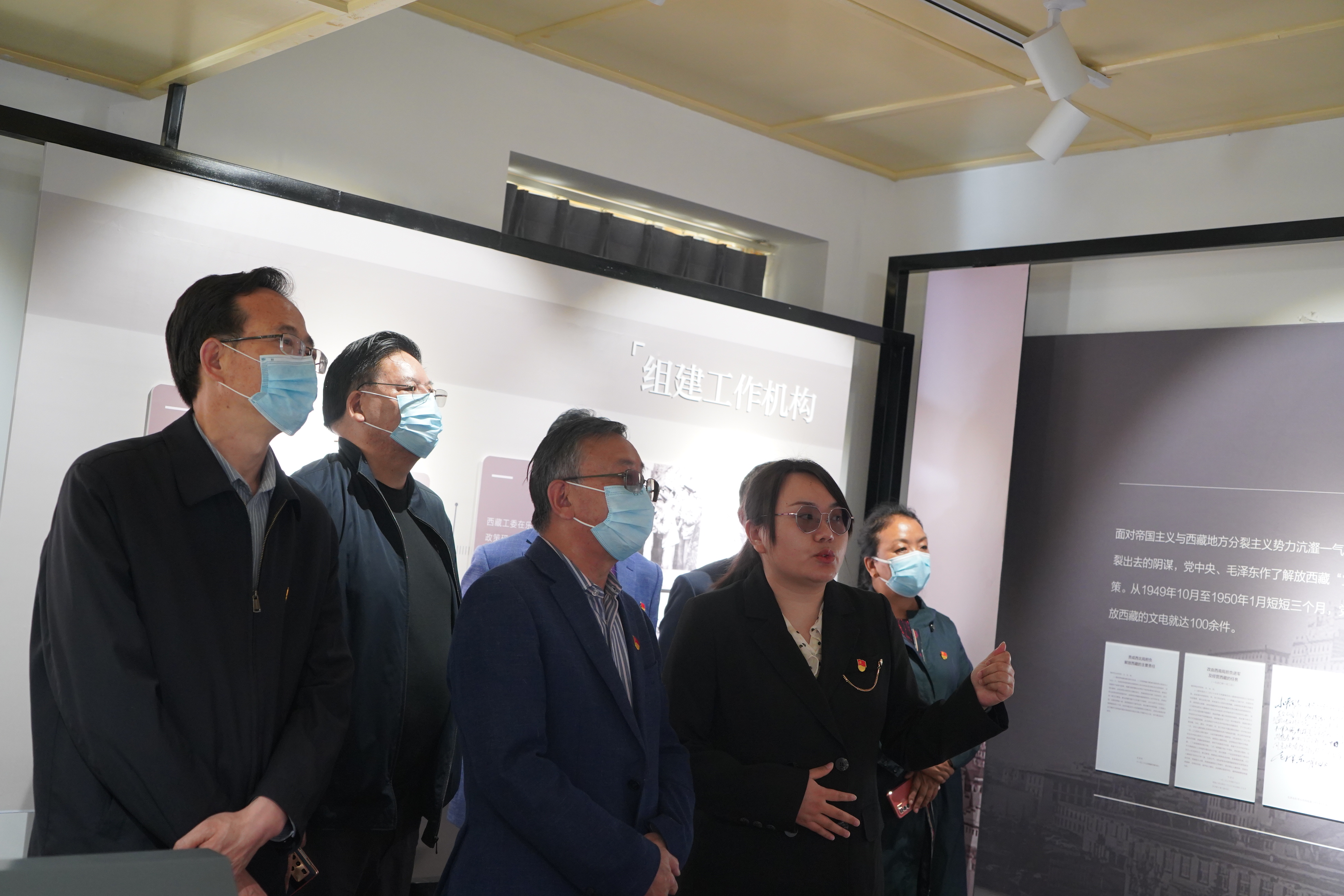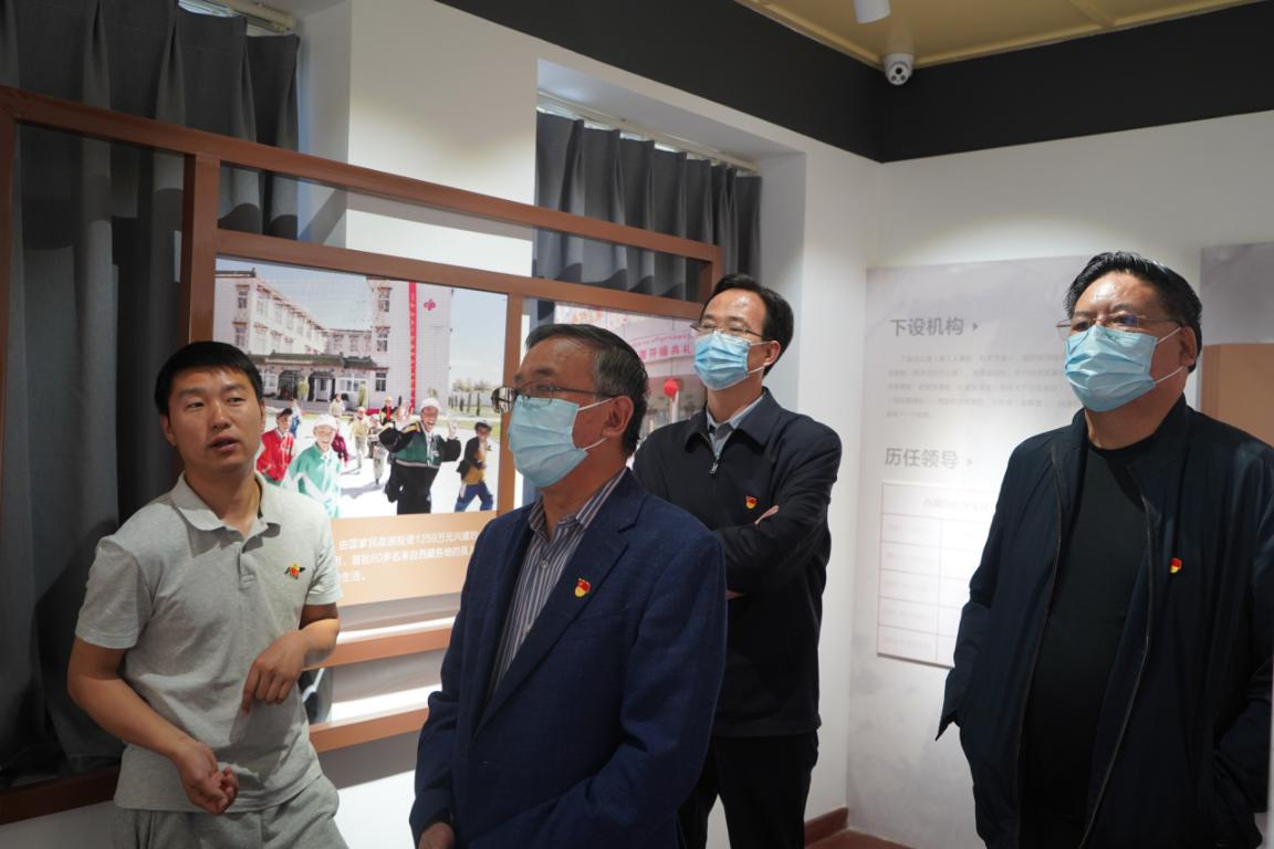 5月25日上午,发展规划处任利涛、发展研究中心王阳为自治区政协副主席王亚蔺等一行十名领导讲解红色遗迹系列展陈。