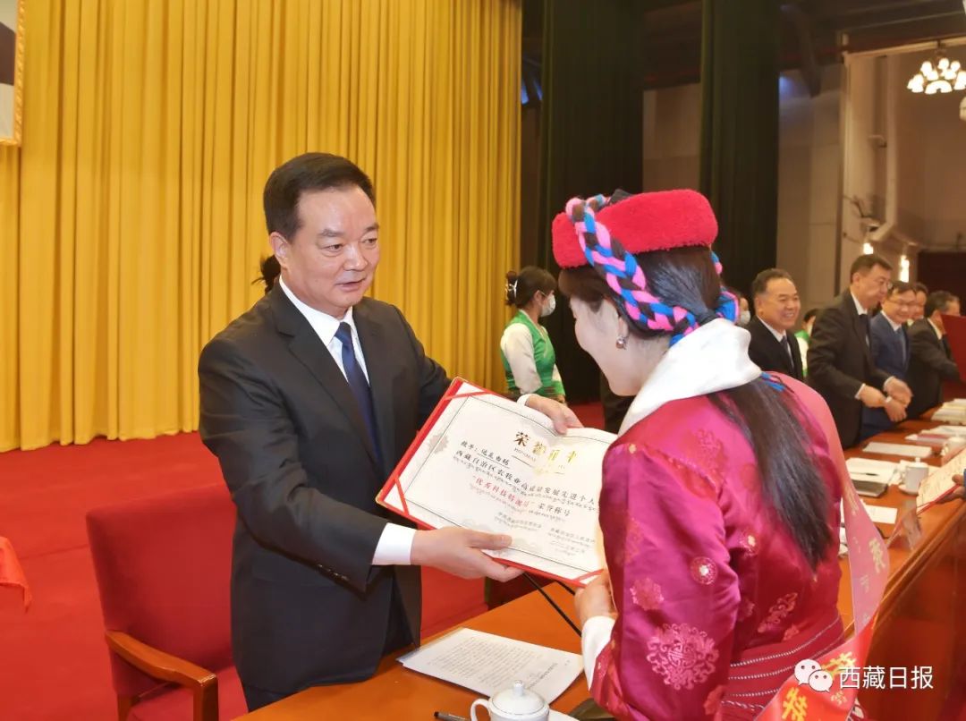 2月13日上午,自治区党委农村工作会议在拉萨召开。这是自治区党委书记王君正为2022年全区“三农”工作先进个人颁发荣誉证书。记者 旦增西旦 摄