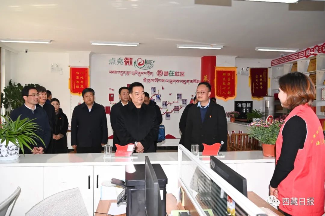 2月22日,自治区党委书记王君正来到林芝市巴宜区、米林县基层村居社区,看望慰问基层群众和党员干部,与各族群众一起欢度藏历新年。这是在巴宜区觉木街道双拥路社区,王君正走进党群服务中心、健康服务站、老年活动中心,看望慰问坚守岗位的基层干部和欢度藏历新年的居民。记者 旦增西旦 摄