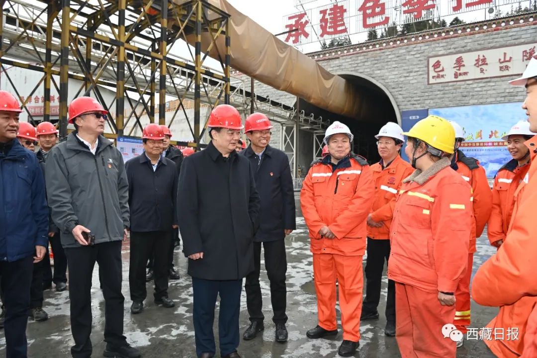 2月20日至24日,自治区党委书记王君正深入林芝市巴宜区、米林县就深入贯彻落实党的二十大精神、加快推动高质量发展和改革开放先行等进行调研。这是藏历新年初一,王君正来到川藏铁路色季拉山隧道施工现场,亲切看望慰问节日期间奋战在一线的建设者,向他们致以节日的问候。记者 旦增西旦 摄