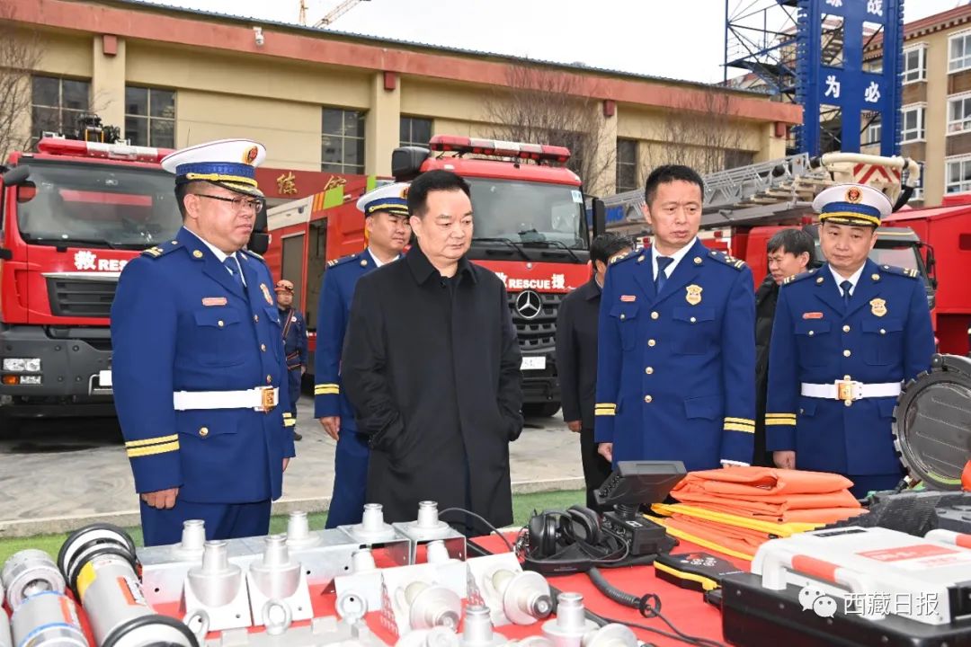 2月20日至24日,自治区党委书记王君正深入林芝市巴宜区、米林县就深入贯彻落实党的二十大精神、加快推动高质量发展和改革开放先行等进行调研。这是王君正来到林芝市消防救援支队,详细了解救援装备,现场观摩救援演练,并通过视频连线听取藏历新年期间全区消防安排部署工作。记者 旦增西旦 摄