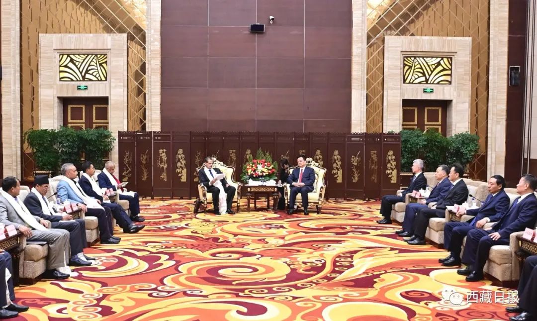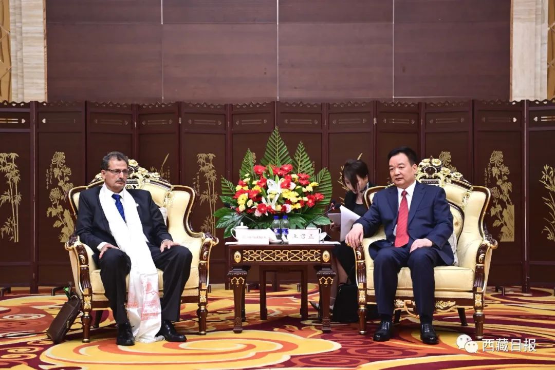 5月20日下午,自治区党委书记王君正在拉萨会见尼泊尔共产党(毛主义中心)副主席阿格尼·普拉萨德·萨博科塔率领的高级干部考察团一行。